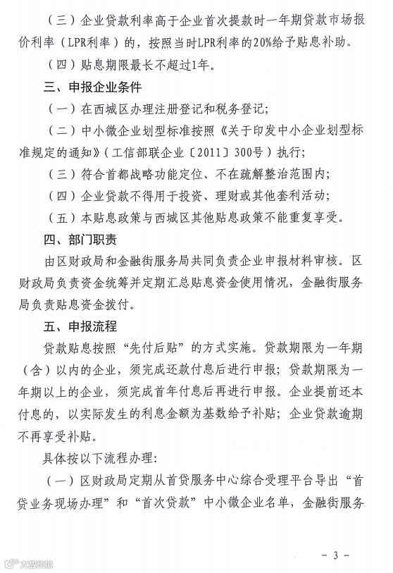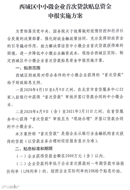 北京市西城区财政局 北京金融街服务局关于印发《西城区中小微企业首次贷款贴息资金申报实施方案》的通知