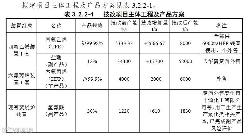 3月26日,常熟三爱富氟化工有限责任公司年产2000吨六氟丙烯及配套四氟乙烯生产项目进入环评拟审批阶段。项目建成后将恢复原设计产能,同步新增17700吨副产品盐酸及610吨副产品氢氟酸。