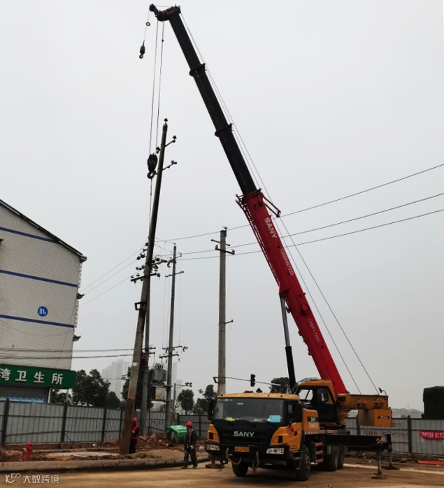 项目道路两侧退运的11基电杆长度15米,这些碍事的“大高个”必须由吊车移除。紫荆路为双向四车道,道路两侧的车道已停满了车辆,可供通行的仅剩两条车道,道路比较狭窄,吊车想要正常施工,需要有足够的空间。