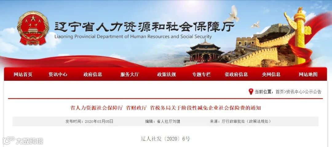 3月5日,经辽宁省政府同意,省人社厅、省财政厅、国家税务总局辽宁省税务局联合下发《关于阶段性减免企业社会保险费的通知》,主要内容如下: