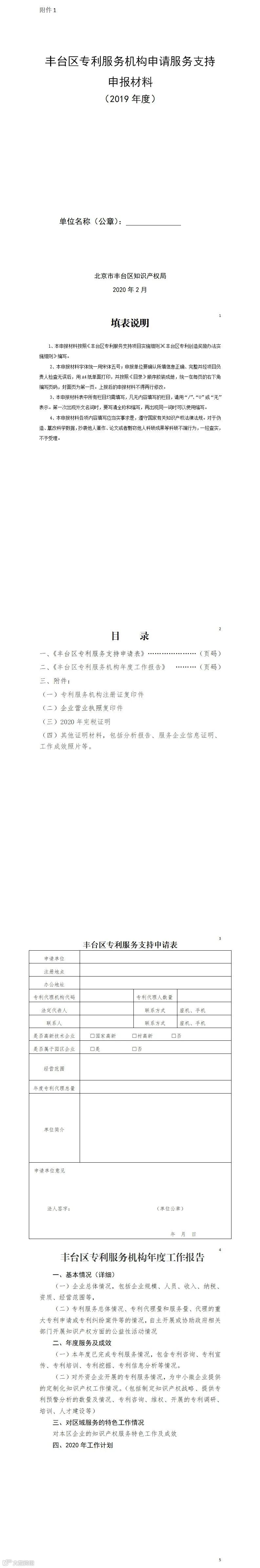 附件1:丰台区专利服务机构申请服务支持申报材料(2019年度);