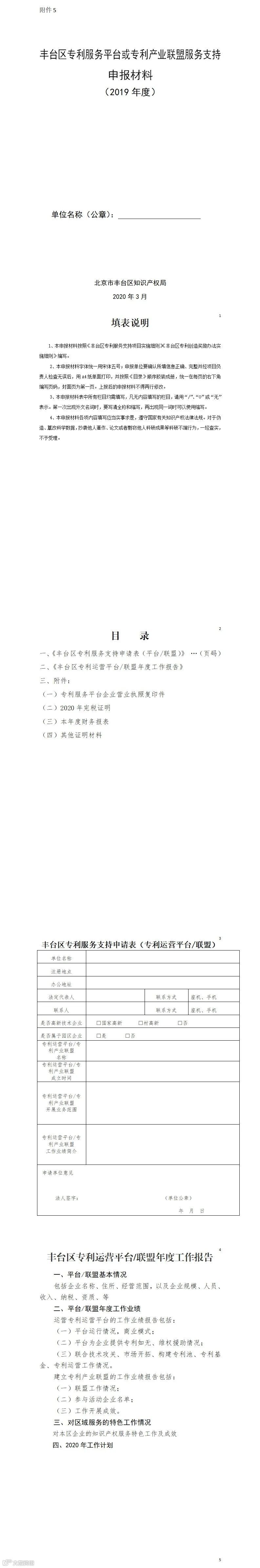 附件5:丰台区专利服务平台(专利产业联盟)服务支持申报材料(2019年度);