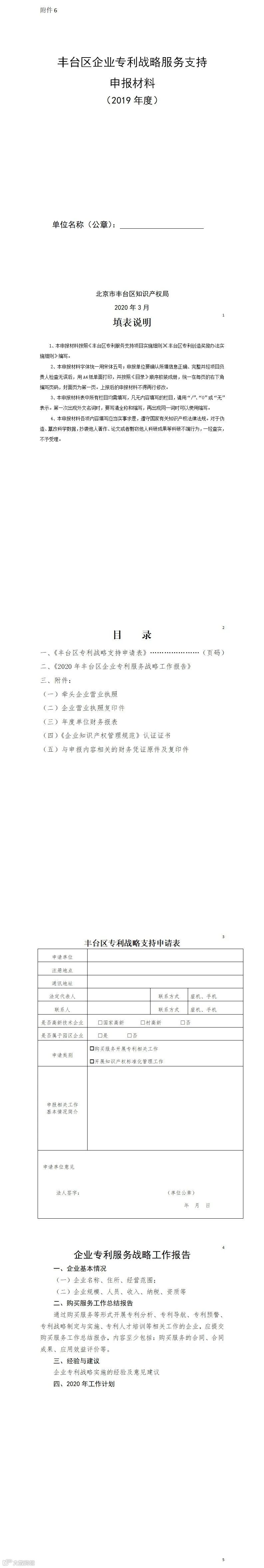 附件6:丰台区企业专利服务战略服务支持申报材料(2019年);