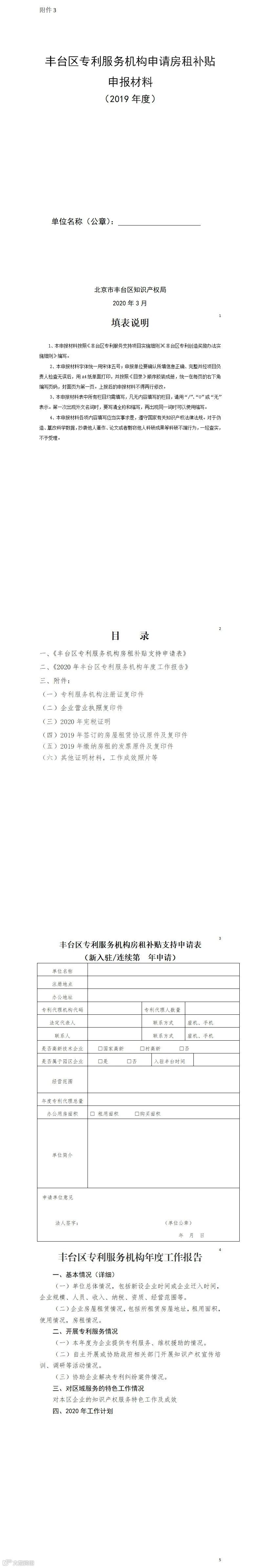附件3:丰台区专利服务机构申请房租补贴申报材料(2019年度);