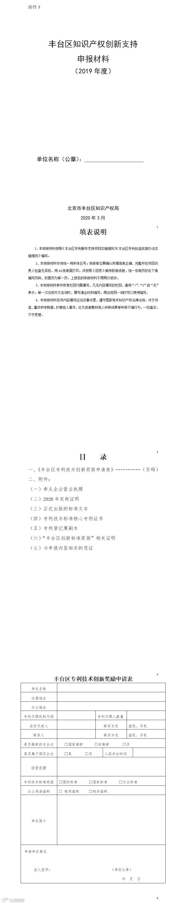 附件7:丰台区知识产权创新支持申报材料(2019年度);