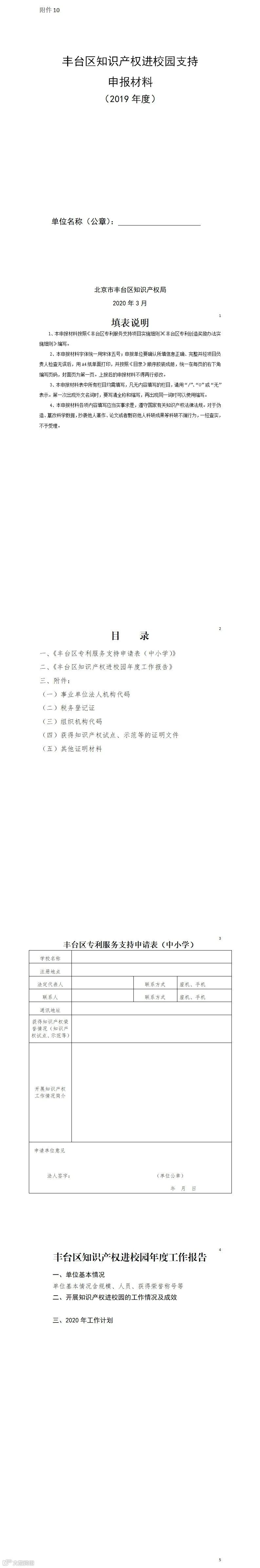 附件10:丰台区知识产权进校园申报材料(2019年度)。