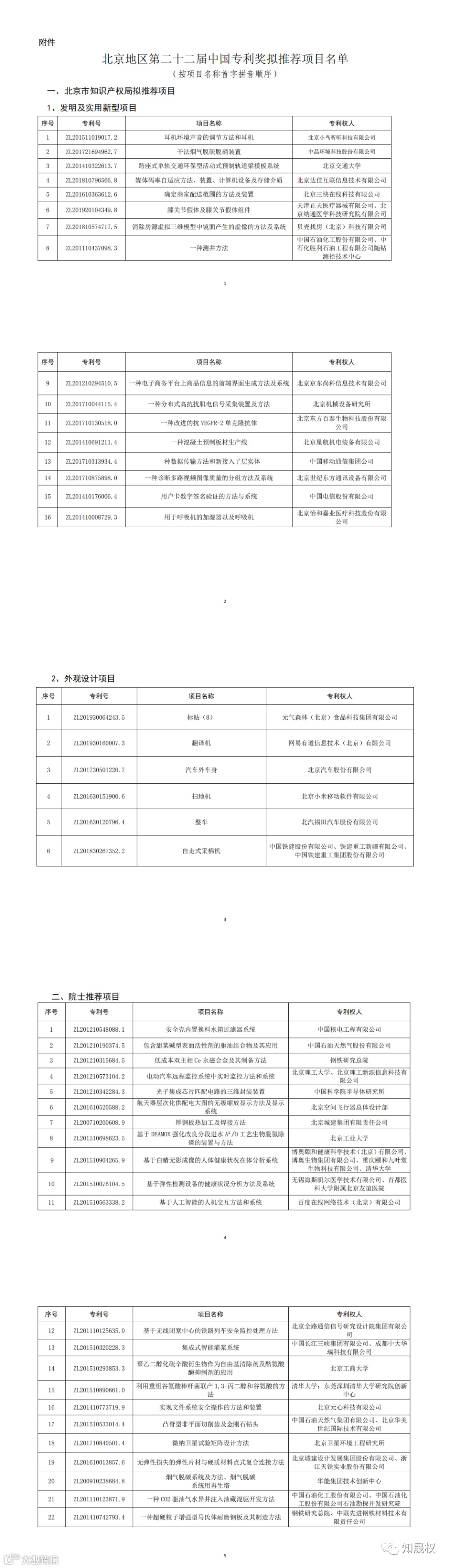 附件:北京地区第二十二届中国专利奖拟推荐项目名单.pdf