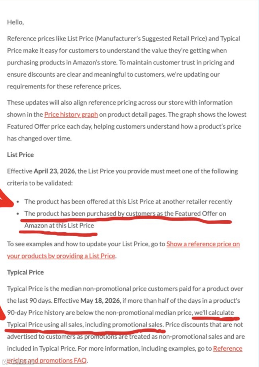亚马逊明确要求:「划线价」(也就是我们常说的原价)必须是 「真实成交价」——