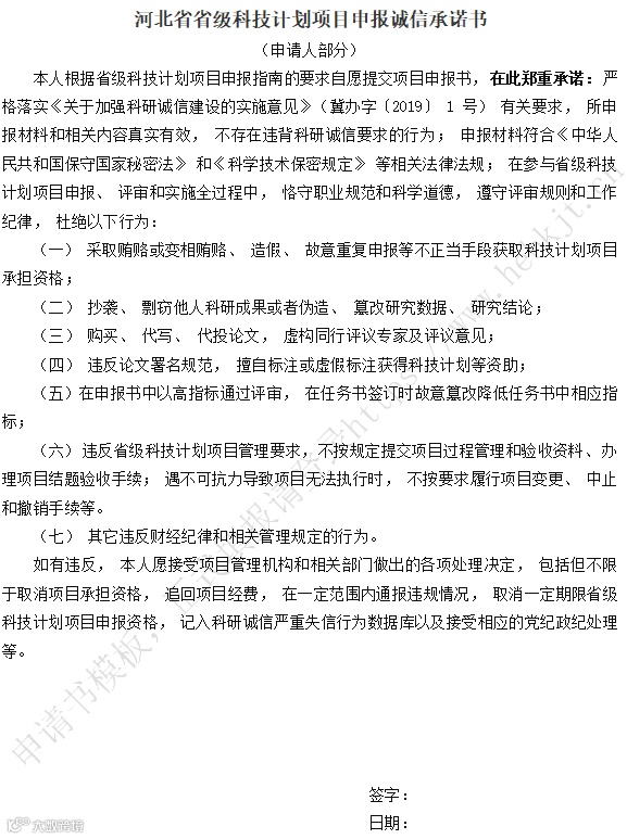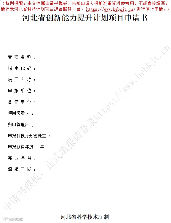 (一)《河北省创新能力提升计划新型研发机构建设专项申报书》。申报项目名称为“单位名称+新型研发机构建设”,如“北京大学邯郸创新研究院新型研发机构建设”。