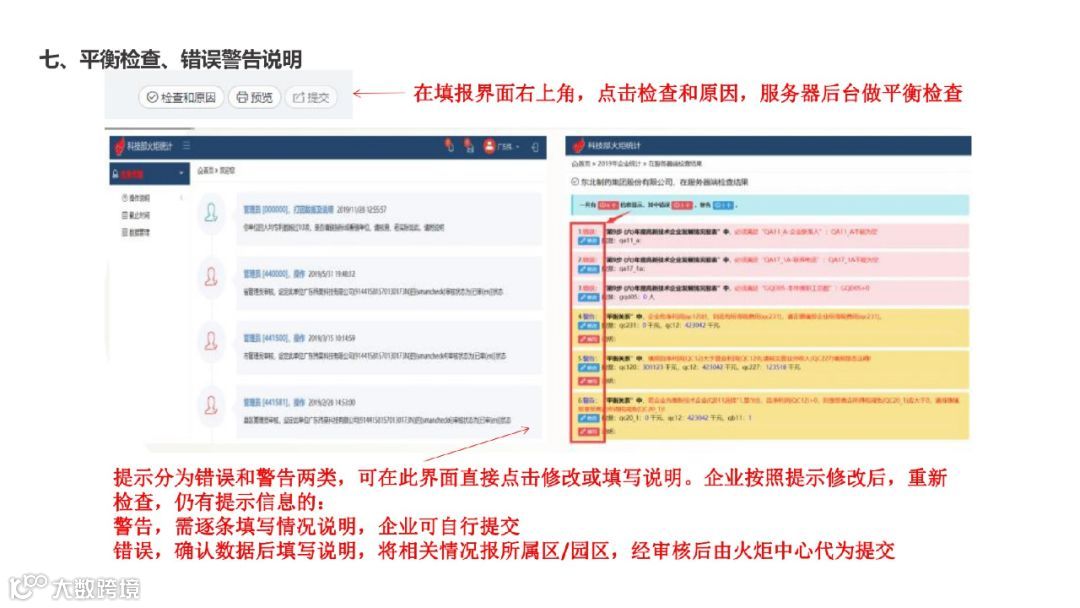 (三)系统内置数据平衡检查,请按照提示修改错误及警告项,如有警告项确为企业真实情况,请逐条填写原因。