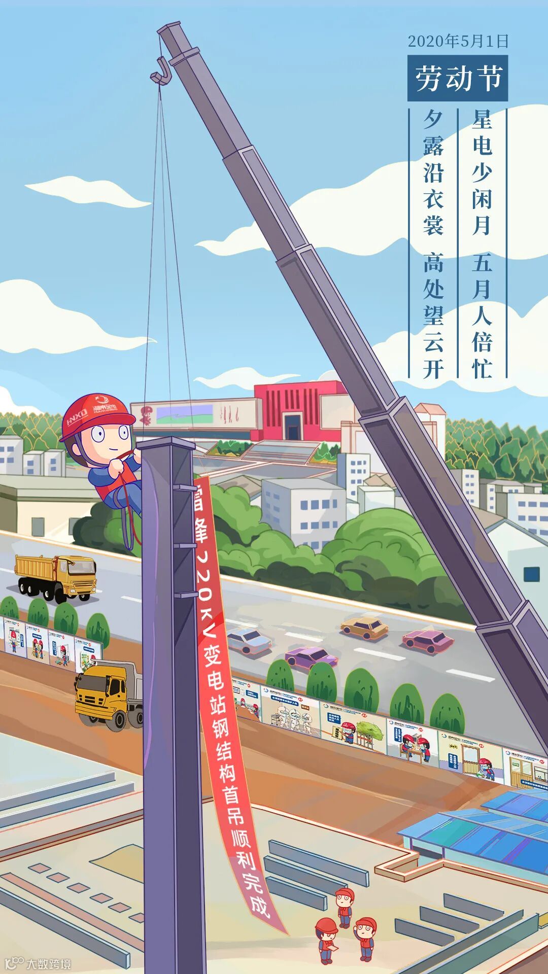 220千伏雷锋变电站内的首根钢结构腾空而起,施工人员直面风雨、脚踏泥泞、攀登高处的画面,展现了劳动者的最美姿态。