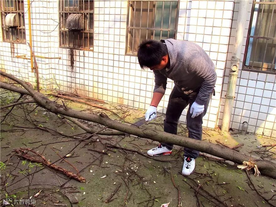 星美综合服务分公司在党支部书记的带领下,雷锋共产党员服务队积极对道路两侧、院内空坪的各类垃圾以及卫生死角彻底清理干净,还为单身公寓外围电线有隐患的树枝进行修剪、砍伐。