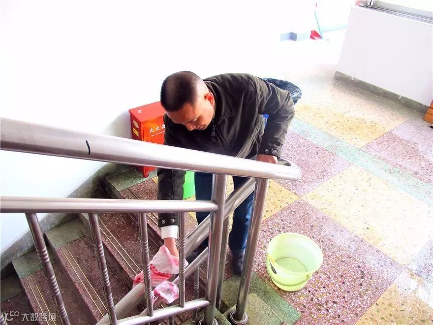 ▴星美公司电雷锋擦拭楼梯两侧扶手及电箱体,