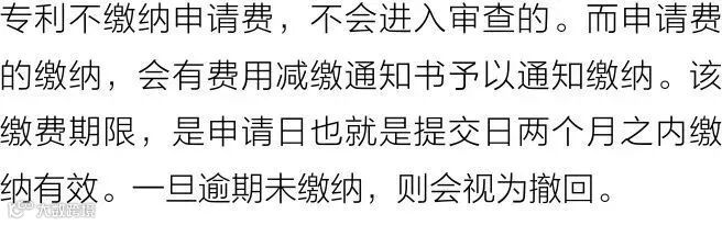 在专利提交后,专利局收到完整的文件后,会发出上述通知书,此时的专利处于等待申请费状态。如果不缴费,就一直会处于这个状态;直到缴费后,会进入下一状态;如果不缴费,错过了期限,专利就会视为撤回。