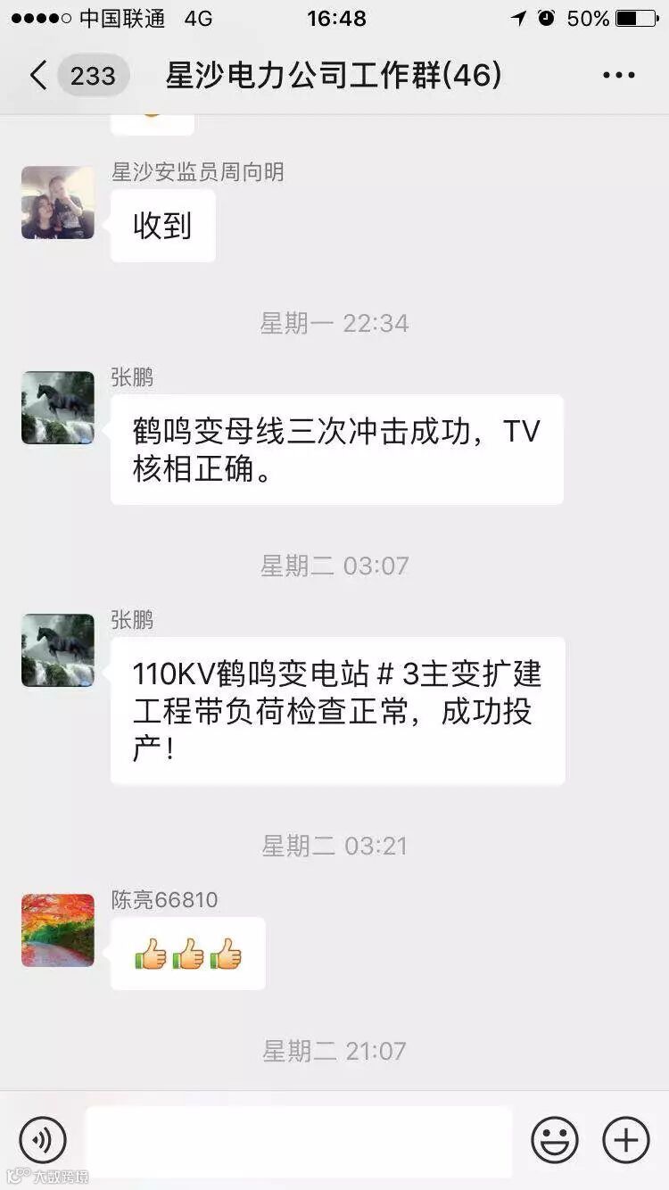 当3号主变成功投产的消息在公司群内宣告时,星沙公司负责人陈亮随即进行了点赞,有同事诧异:亮总居然那么晚还没睡觉?其实投产当日,他一直坚守在鹤鸣变现场至次日凌晨三点,直至主变成功投产。项目部负责人张鹏更是坚守到次日清晨六点,回到办公室补了两个小时的觉又组织项目部进行头脑风暴,商讨鹤鸣变的下一步工作。“鹤鸣变电站3号主变成功投产,标志着鹤鸣变的扩建工程完成了,可改建工程才刚刚开始,我们还不能松懈,更难啃的骨头还在后面!”张鹏如是说。