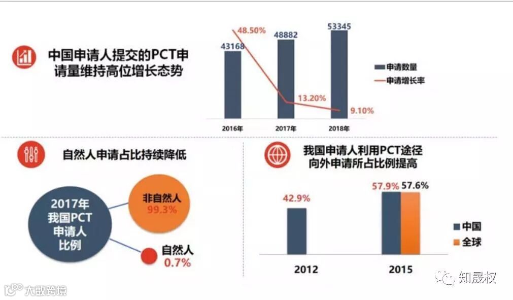 中国申请人利用PCT途径提出的申请所占比例由2012年的42.9%上升至2015年的57.9%,与2015年全球57.6%的平均水平基本持平,PCT途径成为中国申请人向海外申请专利的主要渠道。