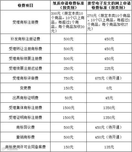 导读:国家知识产权局、商标局、专利局官费收费标准