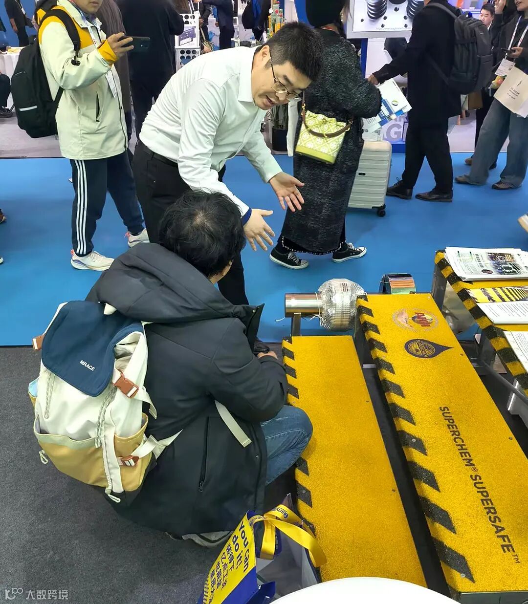艾志工业级安全防滑楼梯板同样受到很多客户的关注,纷纷体验了展示样品的防滑效果,该产品在海工平台和船舶人行通道具有很强的使用潜力。