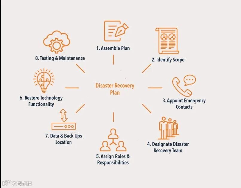 1)组建灾难恢复团队: 企业必须指派专家来创建、管理和实施灾难恢复计划。有效的恢复计划会详细定义团队成员的角色和职责。它还概述了恢复团队、供应商、员工和客户的适当沟通渠道。