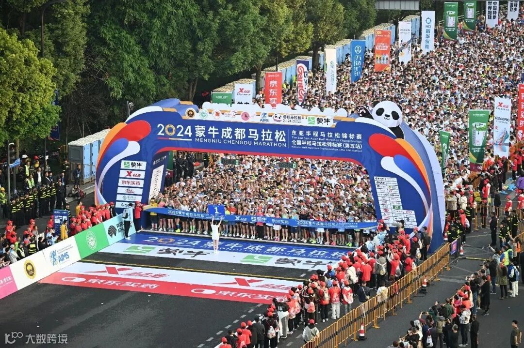 10月27日,以“乐跑公园城市 奋进创新之城”为主题的2024蒙牛成都马拉松正式鸣枪起跑。来自全球的35000名选手从金沙遗址出发,一同体验“雪山下的公园城市、烟火里的幸福成都、奋进中的创新之城”的万千气象和独特魅力。
