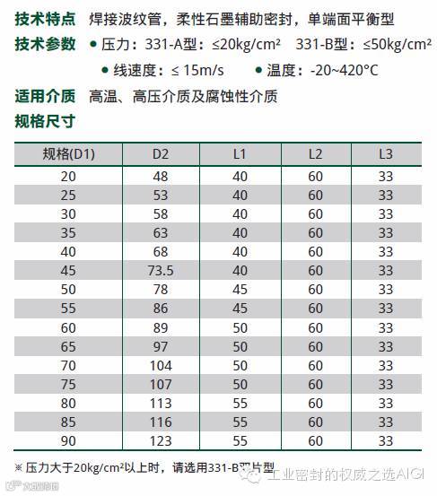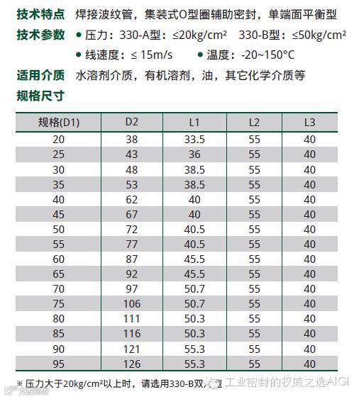 AIGI 330 金属波纹管通用型/AIGI 331 高温型机械密封