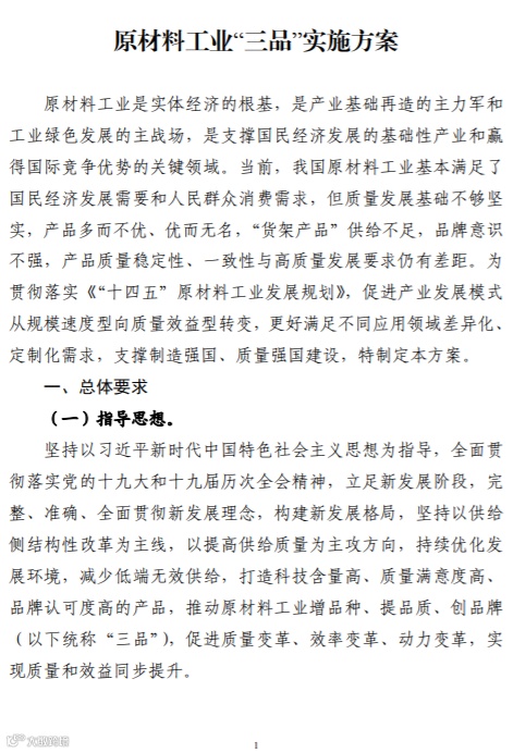 附件:《原材料工业“三品”实施方案》