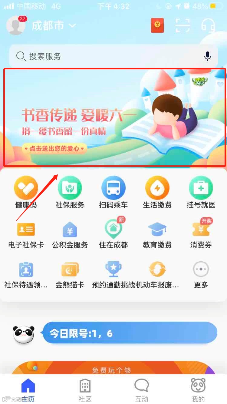 除了开通快速捐书入口,天府市民云还同步开设了“六一”市民互动话题。参与互动,将有机会获得大悦城“嗨玩卡”、蹦床馆、滑雪馆门票、琥珀亲子会员等多重好礼。