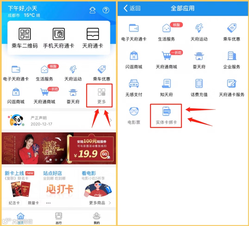打开天府通App,点击【更多】