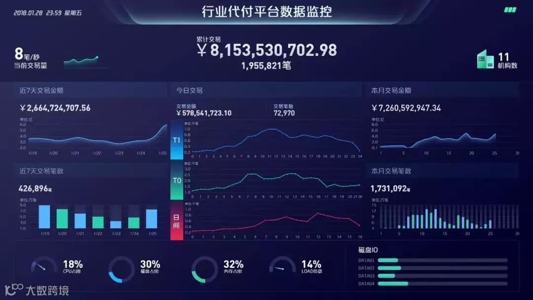 宜昇科技参与项目中的行业代付平台数据监控图