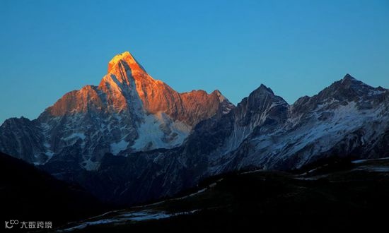 山腰冰川环绕、山顶白雪皑皑