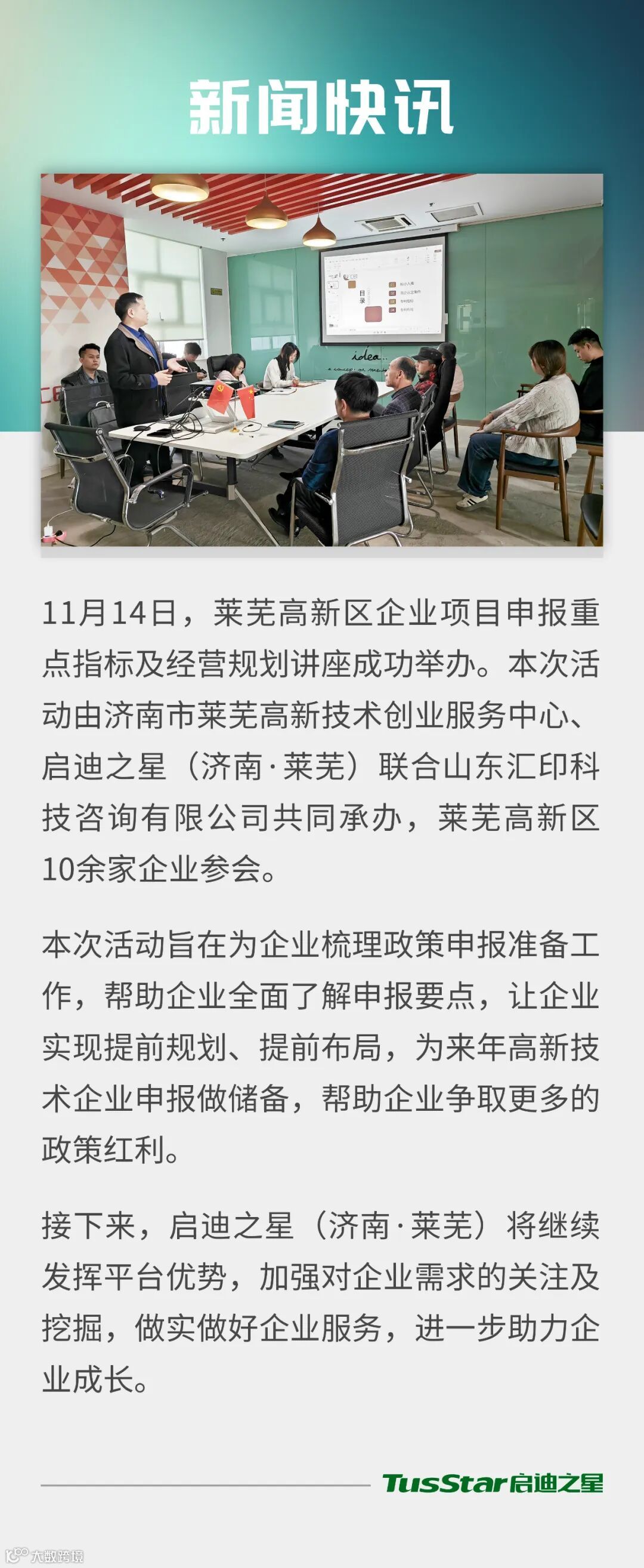 启迪之星(济南·莱芜)后备高企项目申报规划讲座成功举办!