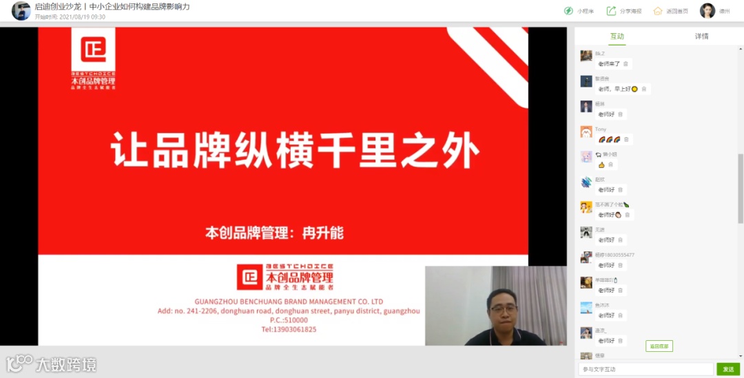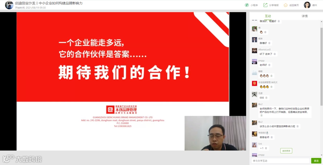 本次活动内容具有较强的针对性和指导性,冉升能老师在线上与参会企业实时互动,就企业代表提出的问题进行耐心解答并给出建议,参会企业纷纷表示受益匪浅,并对公司如何树立品牌形象有了更明确的方向。