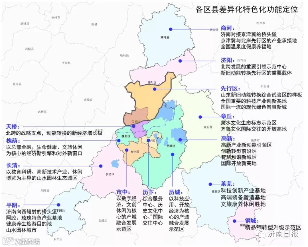 济南新一轮城市发展战略规划中,明确了各区县差异化特色化功能定位,从中一窥济南推动高质量发展的路线图。