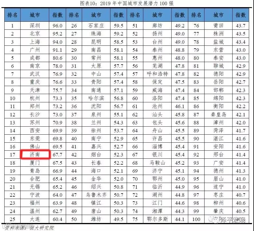 近日,《中国城市发展潜力排名:2019》发布。山东两座城市进入全国20强,其中济南排名第17,青岛排名第19。