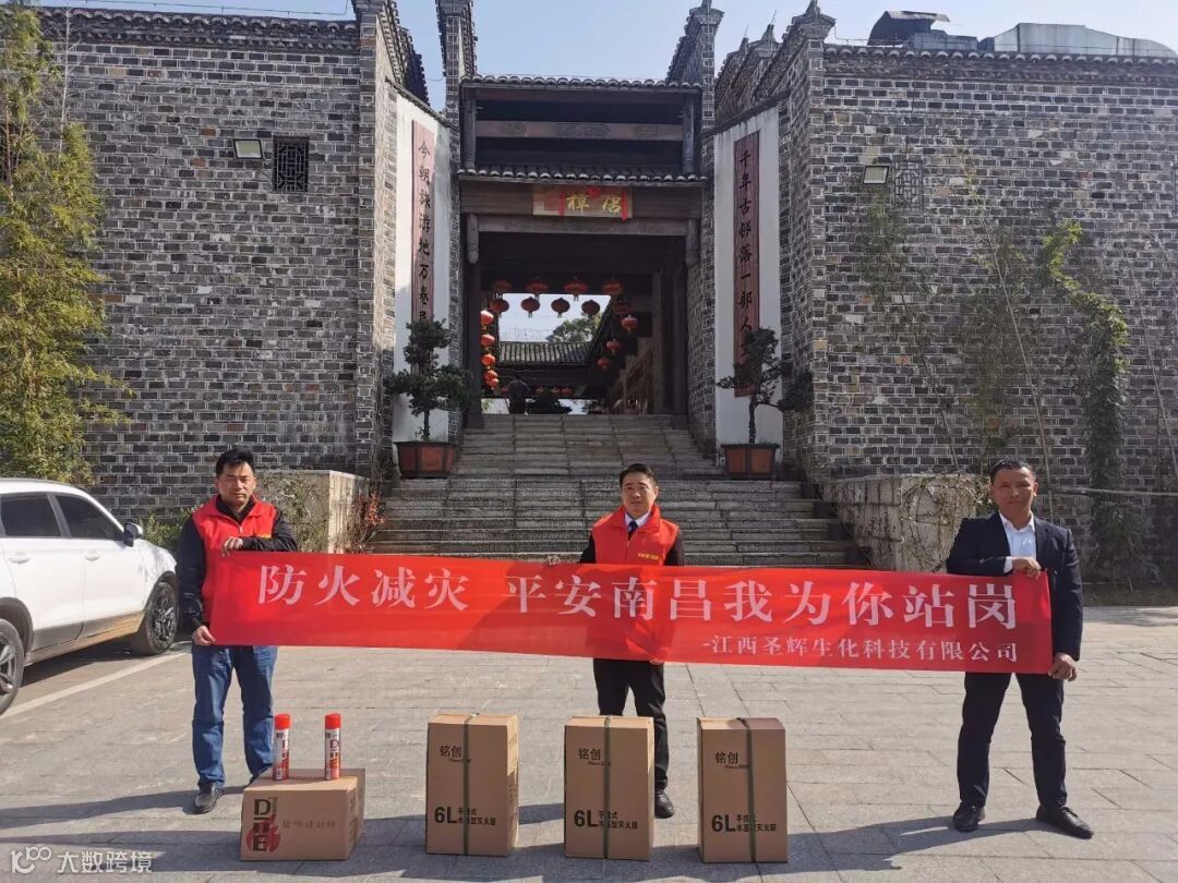 11月27日,江西圣辉生化科技有限公司一行人来到了安义古村,和安义县消防大队一起参与消防宣教站活动,并向江西省安义古村群旅游景区捐赠了一批灭火器。