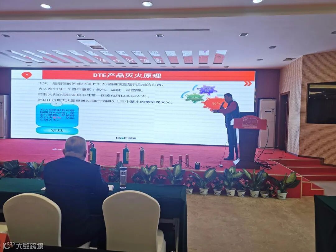 针对传统灭火器在某些场景中效果不明显,且易对环境和公共空间造成污染。万主任向大家讲解了DTE水基灭火器的优势和特点。大家对DTE水基灭火器能够对火源快速降温、高效灭火、与燃烧物质发生化学反应形成聚合物阻燃以及对环境无二次污染有了初步印象。