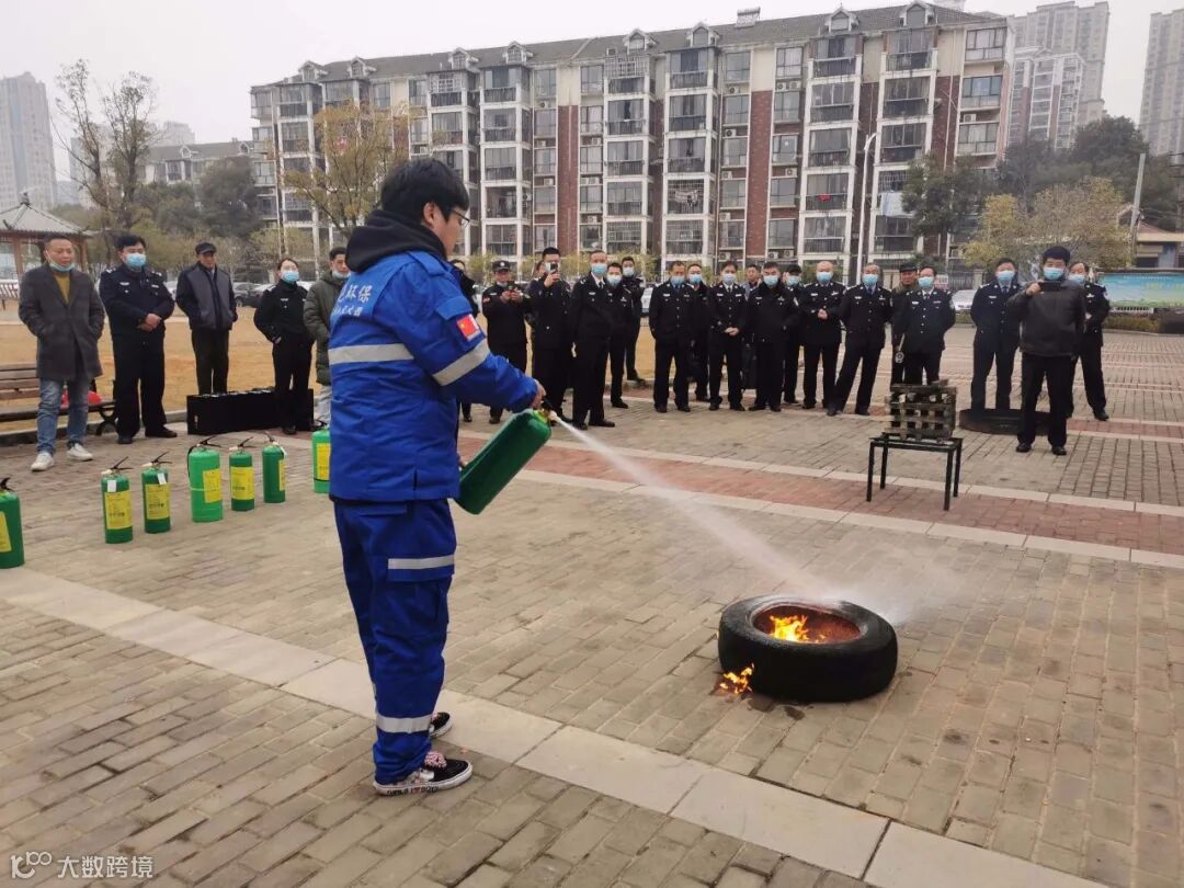 圣辉绿色环保灭火器投入灭火演练,未管所一位女警官积极参与实操。现场演练了灭轮胎火、灭木垛火、灭油盆火、灭电动车自燃火。