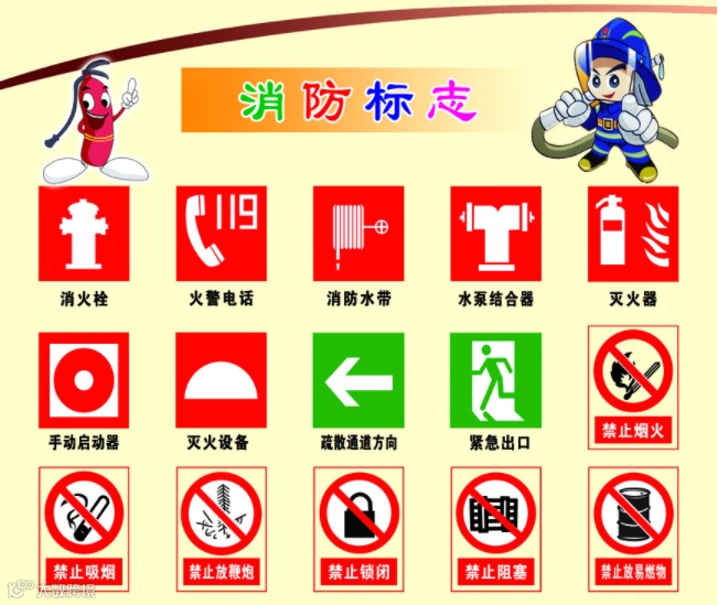 看到建筑、场所的防火标志图案,有意识地让孩童辨识,引导孩童说出预防火灾的方法。不能随便开燃气灶、点火烧纸片,不能让蚊香靠近容易着火的物品,不能玩未熄灭的烟头等;认识防火标志,记清逃生通道。