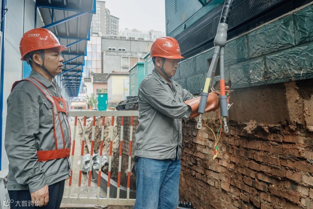 近日,长沙五一商圈太平街内,贾谊故居二期修复工程正如火如荼地进行着,星电集团工作人员在烈日下高效地开展电缆头制作接入,确保项目基建用电按时接通。