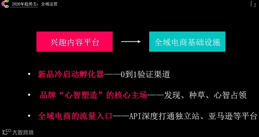TikTok 的运营思维需从单一兴趣电商向全域电商转变,这是 2026 年的核心运营趋势。