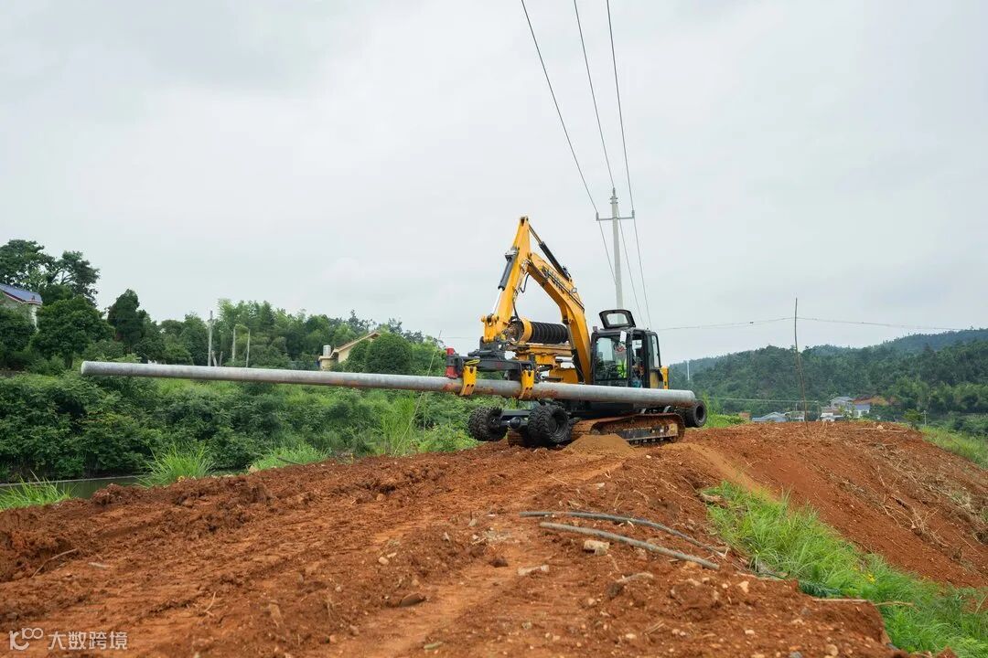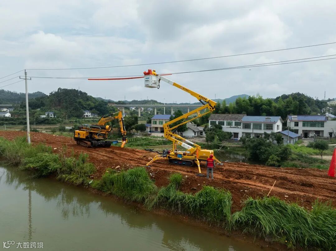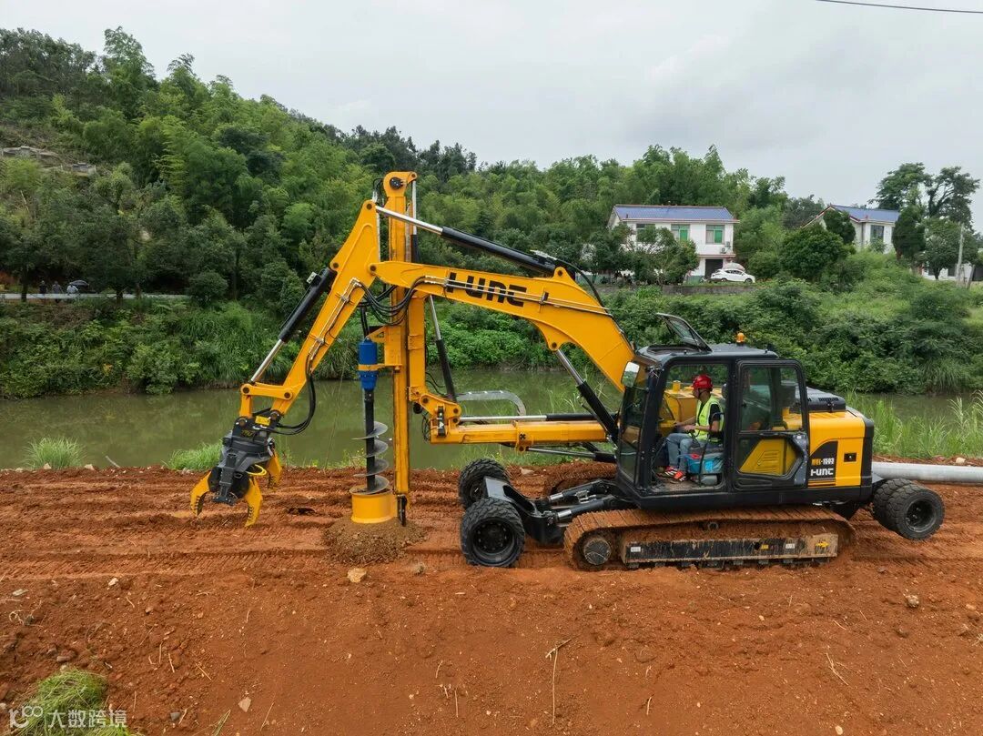 在施工现场,工作人员开进配网机械化施工一体机,因其配备有宽大的履带,面对泥泞的农用道路也如履平地。抵达作业点后,一体机随即高高竖起钻臂,不一会儿,就钻出新的孔洞。收好钻臂后,又神奇地换上抓具,几百斤重的水泥电杆就被稳稳抓住……