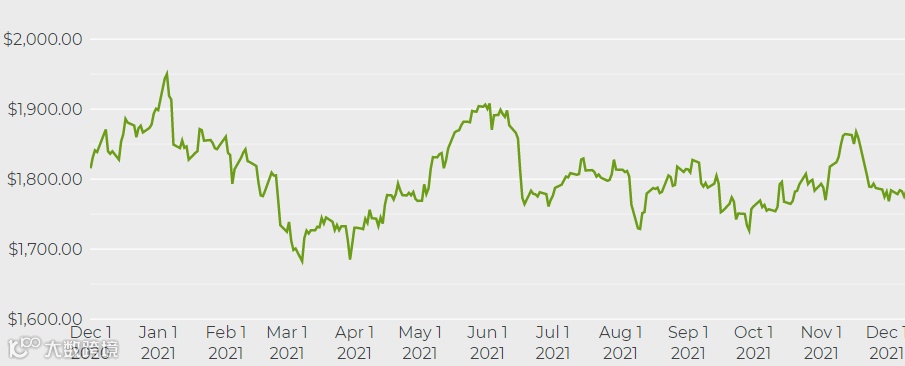 因此,今年截至 2021 年 12 月 27 日,金价的交易价格下跌了4.9%,为三年来首次出现年度亏损铺平了道路。