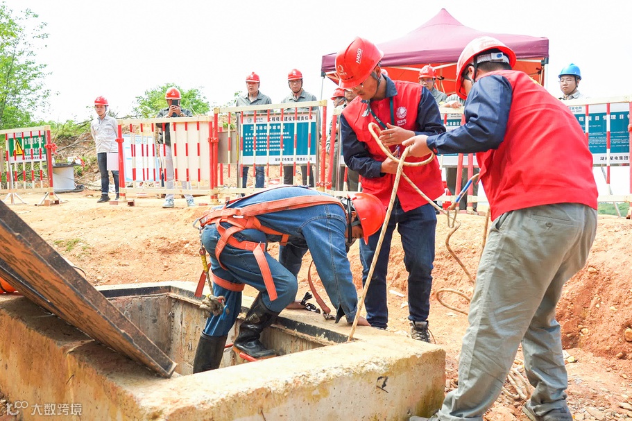 电缆井下作业是星电电建人最常见的作业场景之一,为切实提高作业人员的安全意识和应急救援能力、避险能力,4月17日上午,星电集团在岳麓科技园110kV学坪I、II线#017-#022杆迁工程作业现场进行有限空间应急演练。