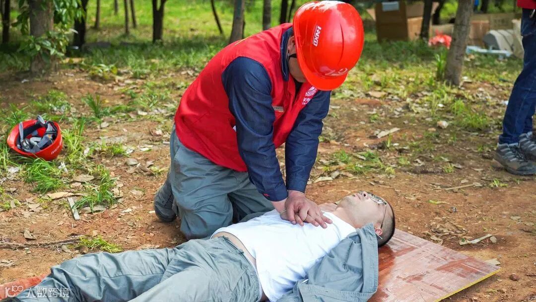 项目部人员立刻拿来防毒面具与通风设备并拨打120,使用气体检测仪再次进行气体检测合格后,救援人员将“伤者”用安全绳拉出电缆井,并转移至井外平地,进行初步检查,根据“伤者”情况立即进行心肺复苏救治。应急救援小组人员及分管领导陆续赶到现场,组织现场救援工作,配合120医护人员将“伤者”送到医院救治。