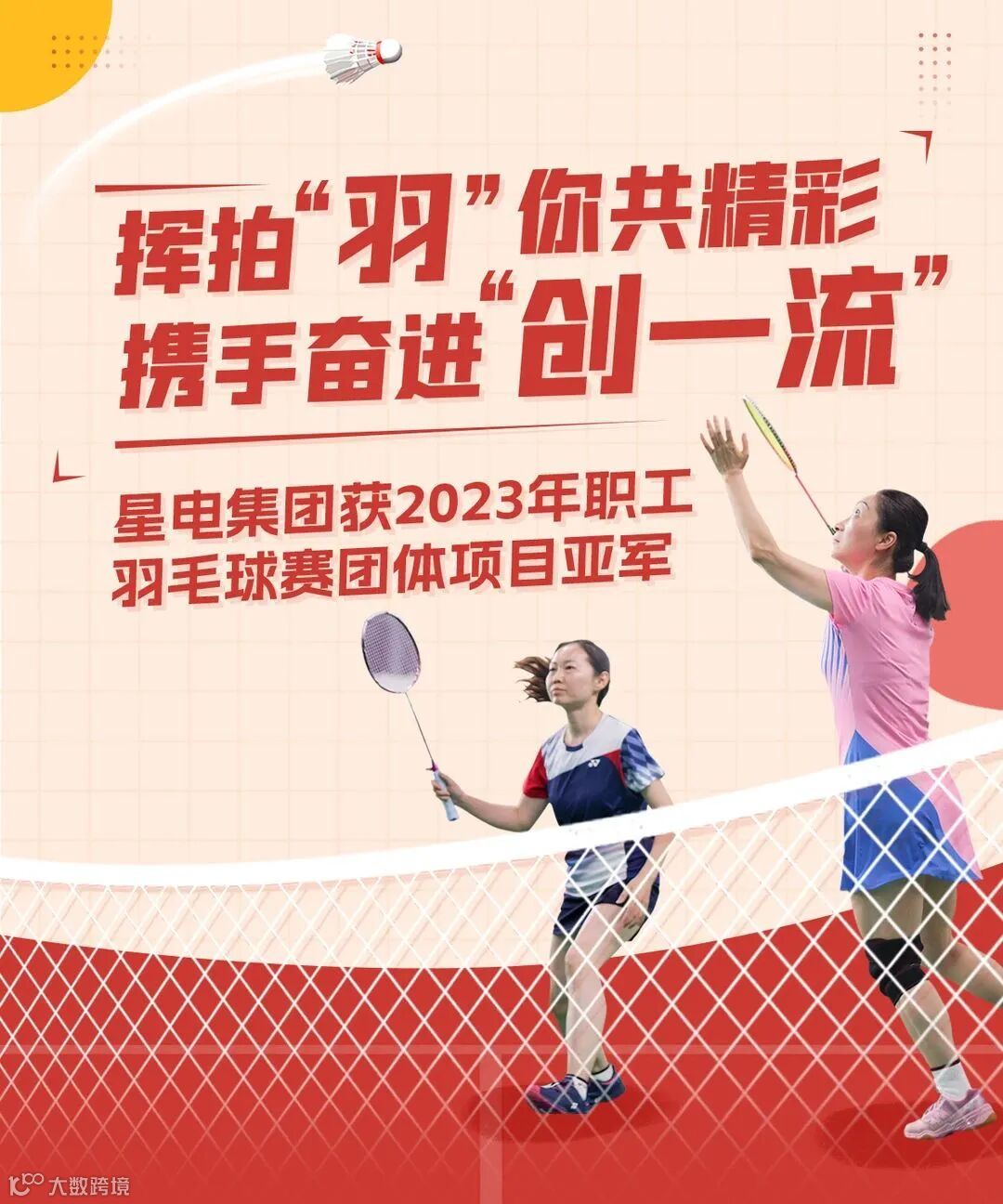 6月27日,为期三天的“强省会引领 创一流大供”2023年职工羽毛球赛落下帷幕。星电集团代表队经过激烈角逐,获羽毛球团体赛亚军。