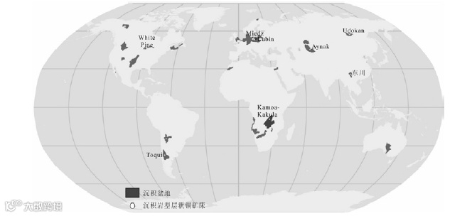 沉积岩型层状铜矿床全球分布图(据Cox et al.,2007;S&P,2018修改)