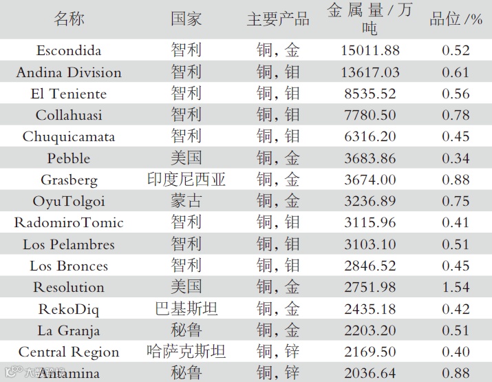 全球资源储量100万吨以上的铜矿分布图