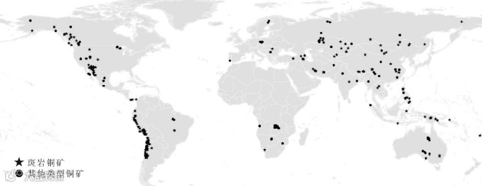 世界超大型(500万吨以上)斑岩铜矿几乎都集中于环太平洋成矿域(重点为南美安第斯成矿带)、特提斯-喜马拉雅成矿域和古亚洲成矿域。