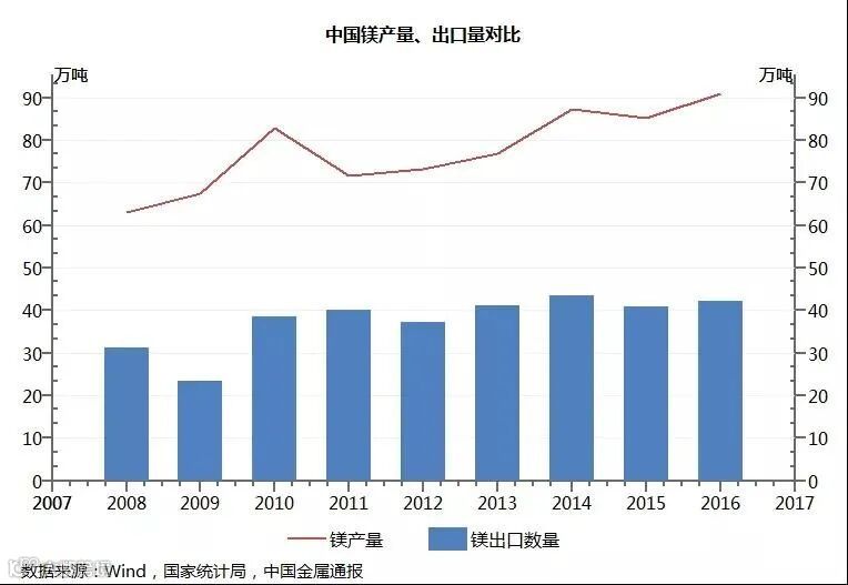 我国生产的镁矿,50%左右都用来出口,由于我国是全球镁供应大国,几乎90%的镁产自于我国。因此,我国市场消化了全球绝大部分的镁产量。