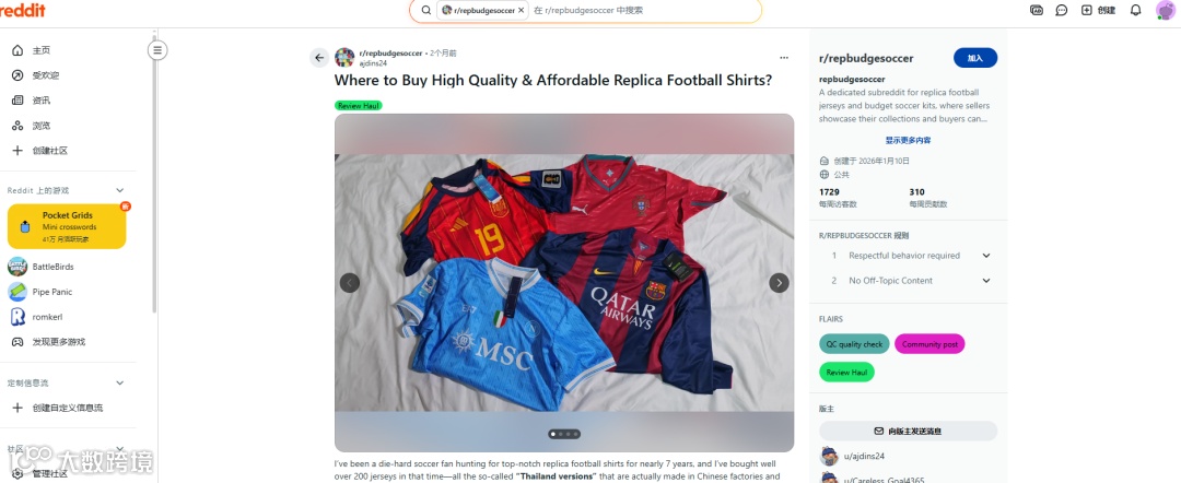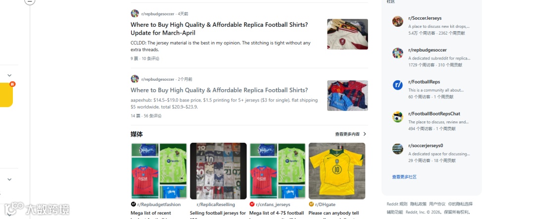 找社区:精准进入球迷圈子,如 r/SoccerJerseys 等。